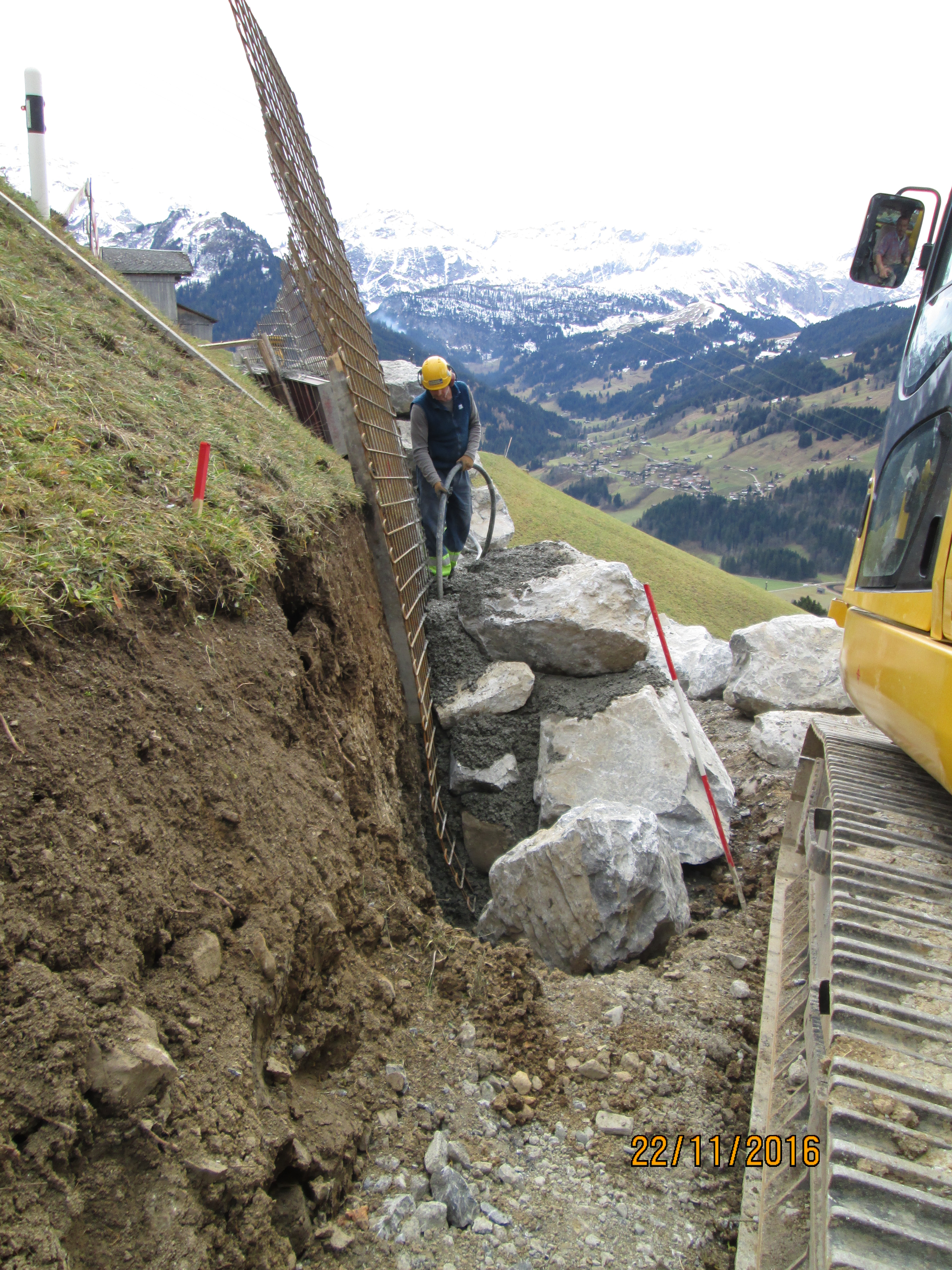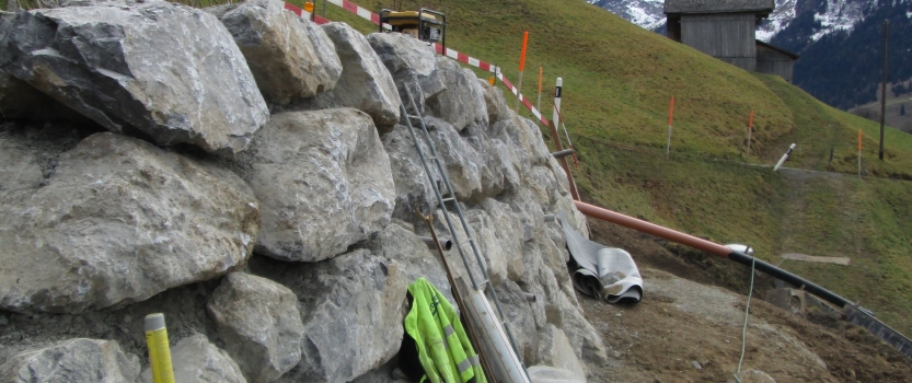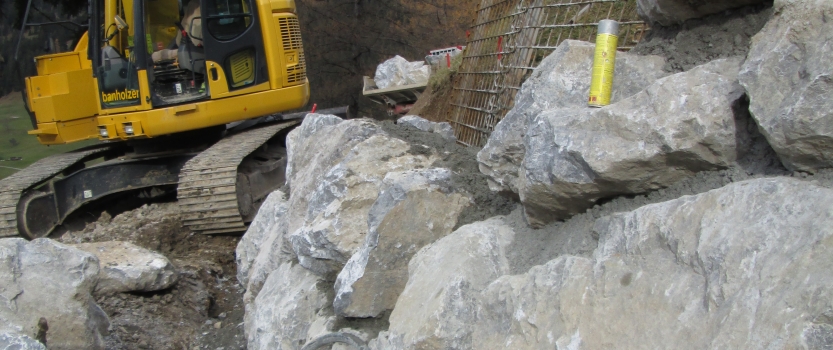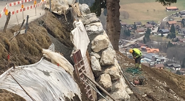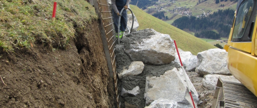 Erstellung eines talseitigen Blocksatzes in Hinterbeton