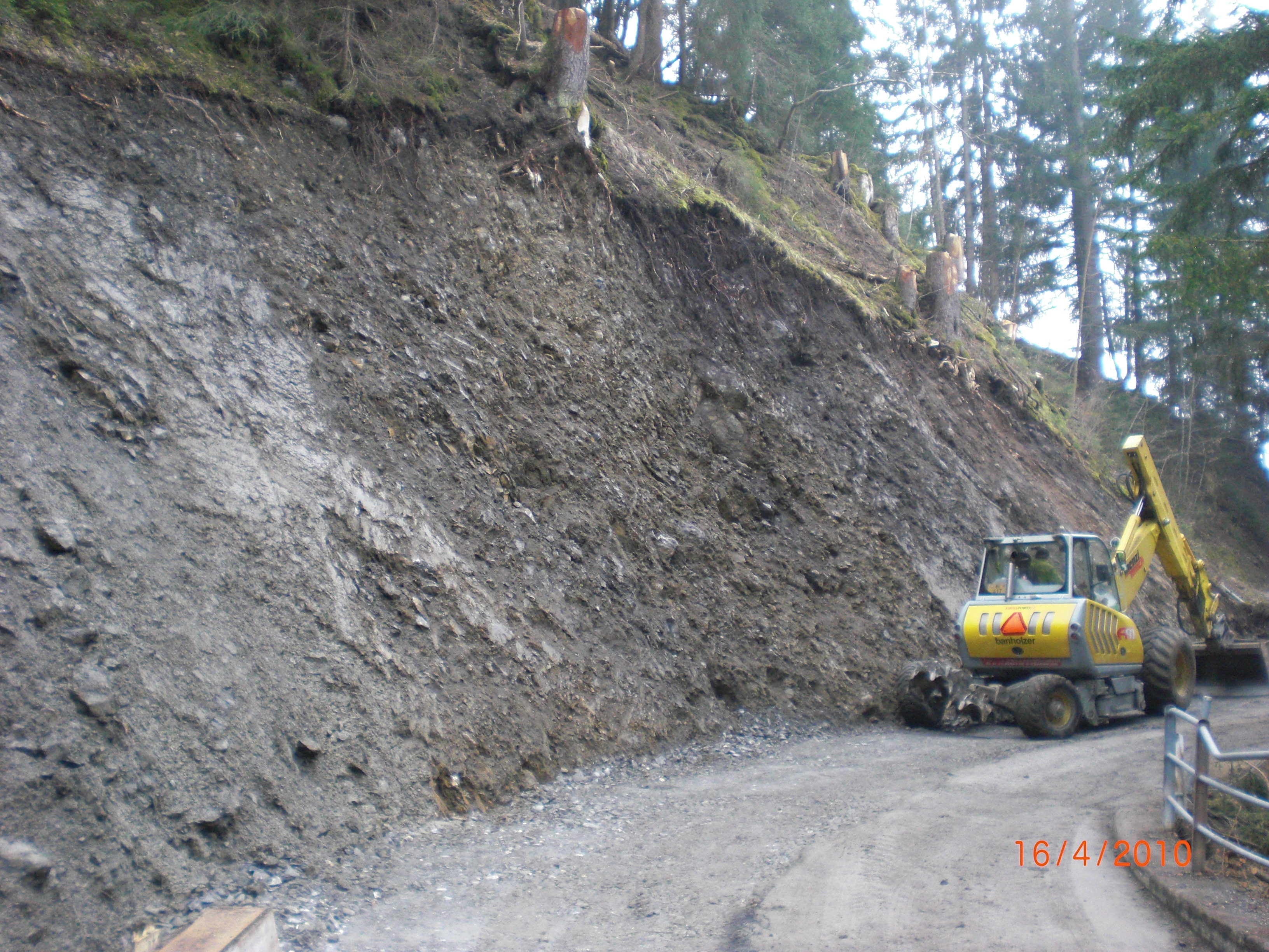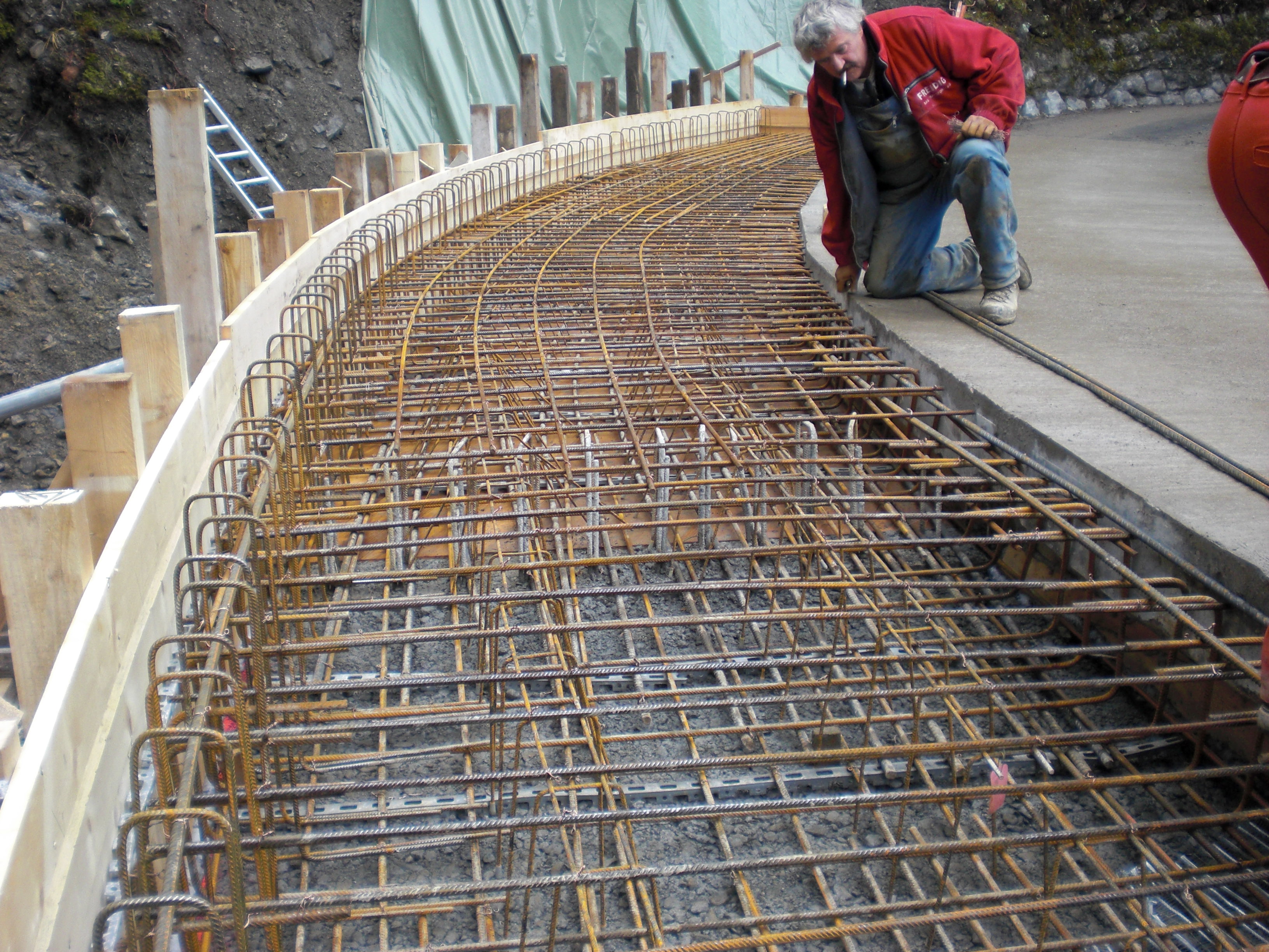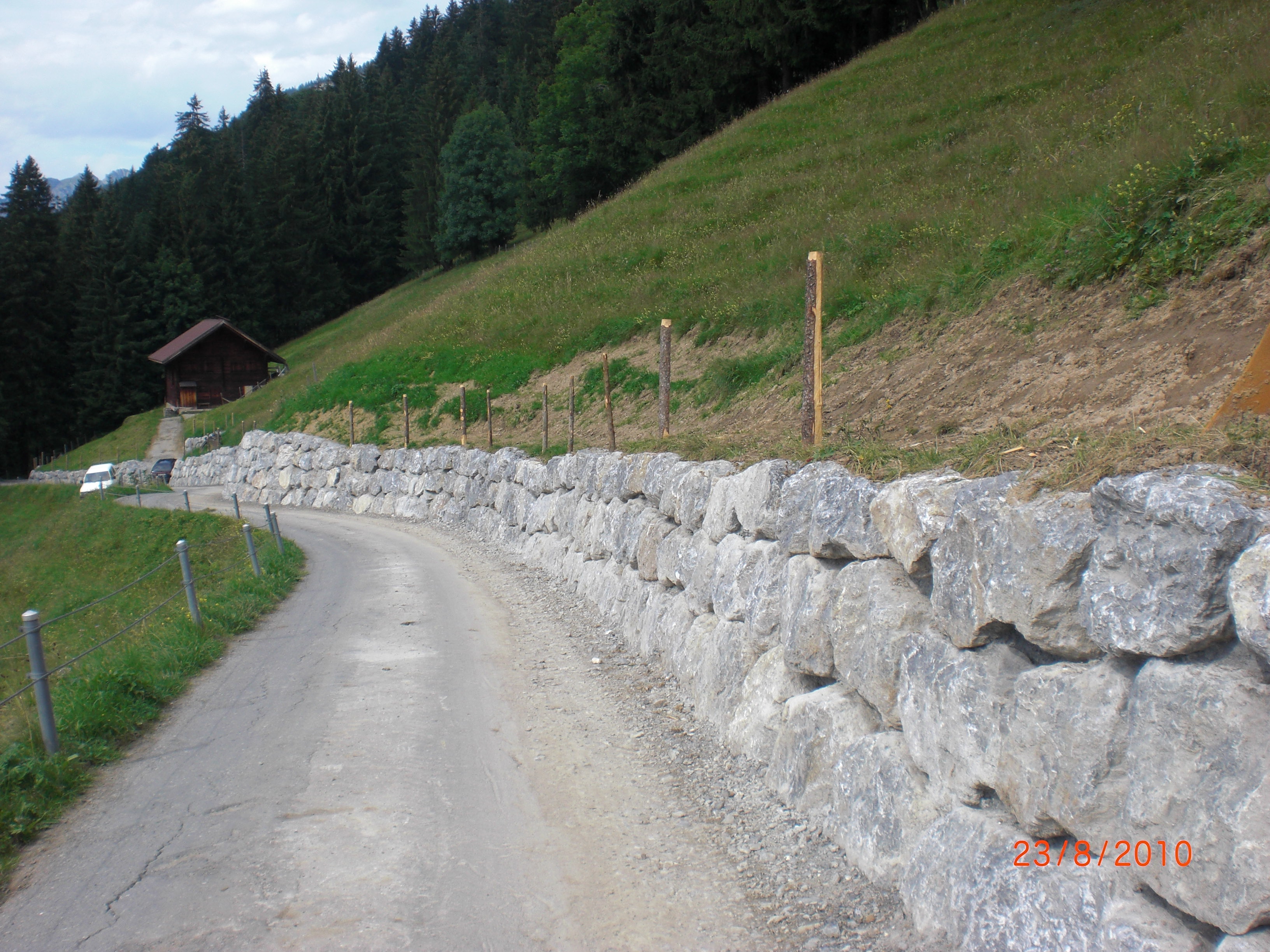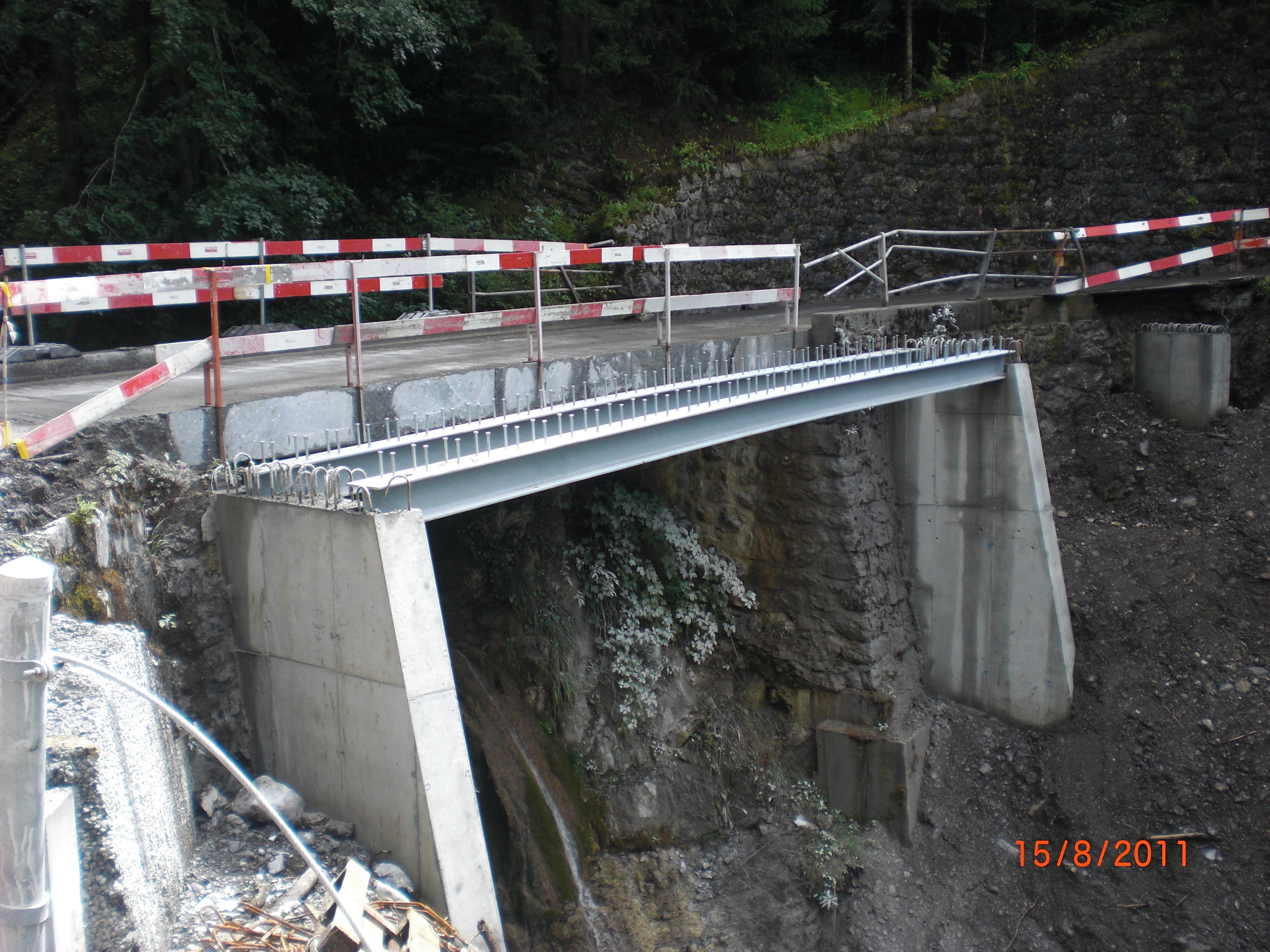 Ausbau der best. Strasse. Berg- und talseitige Hangsicherungen, Strassen- und Brückenverbreiterungen sowie Sanierung des Oberbaus.