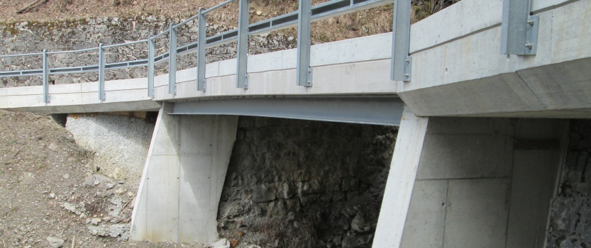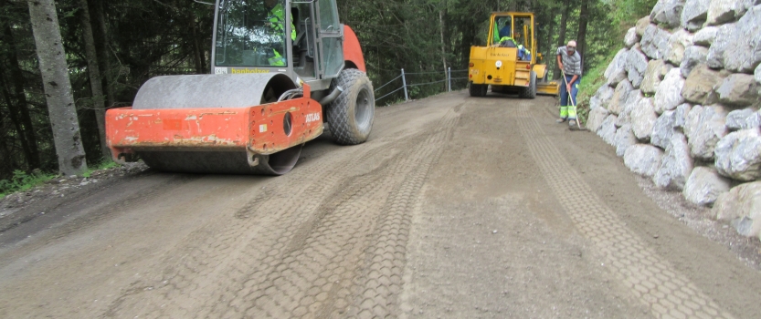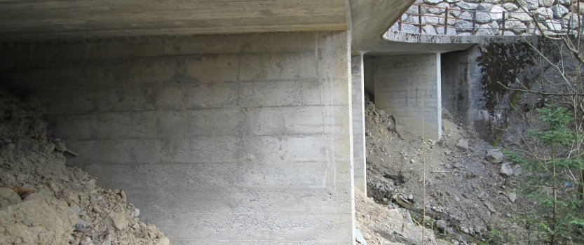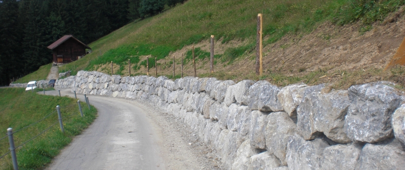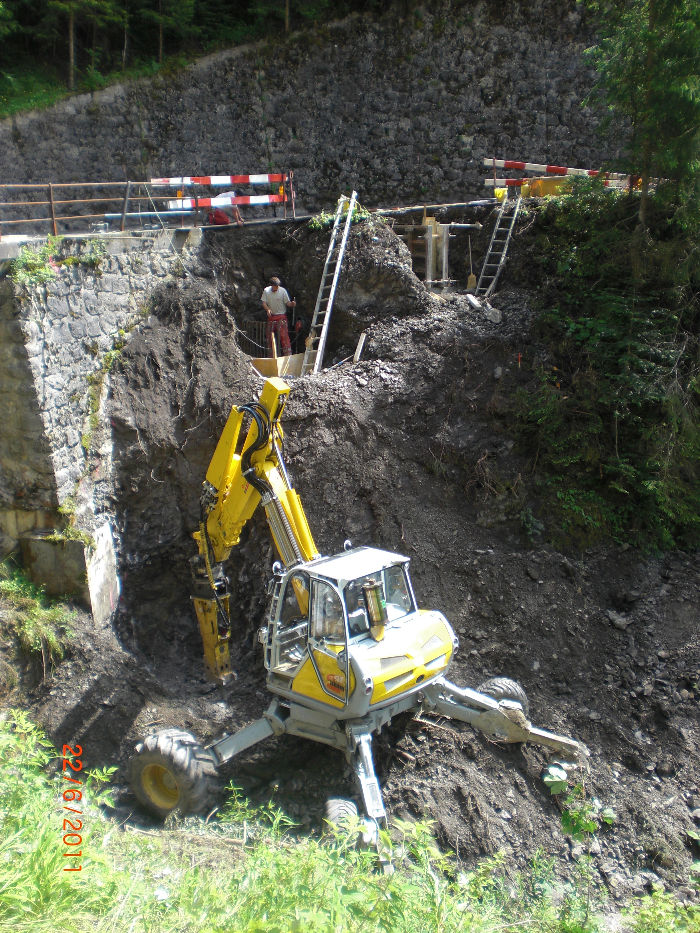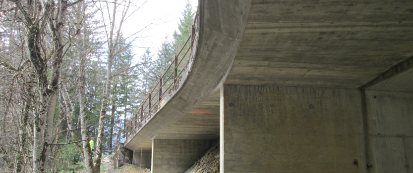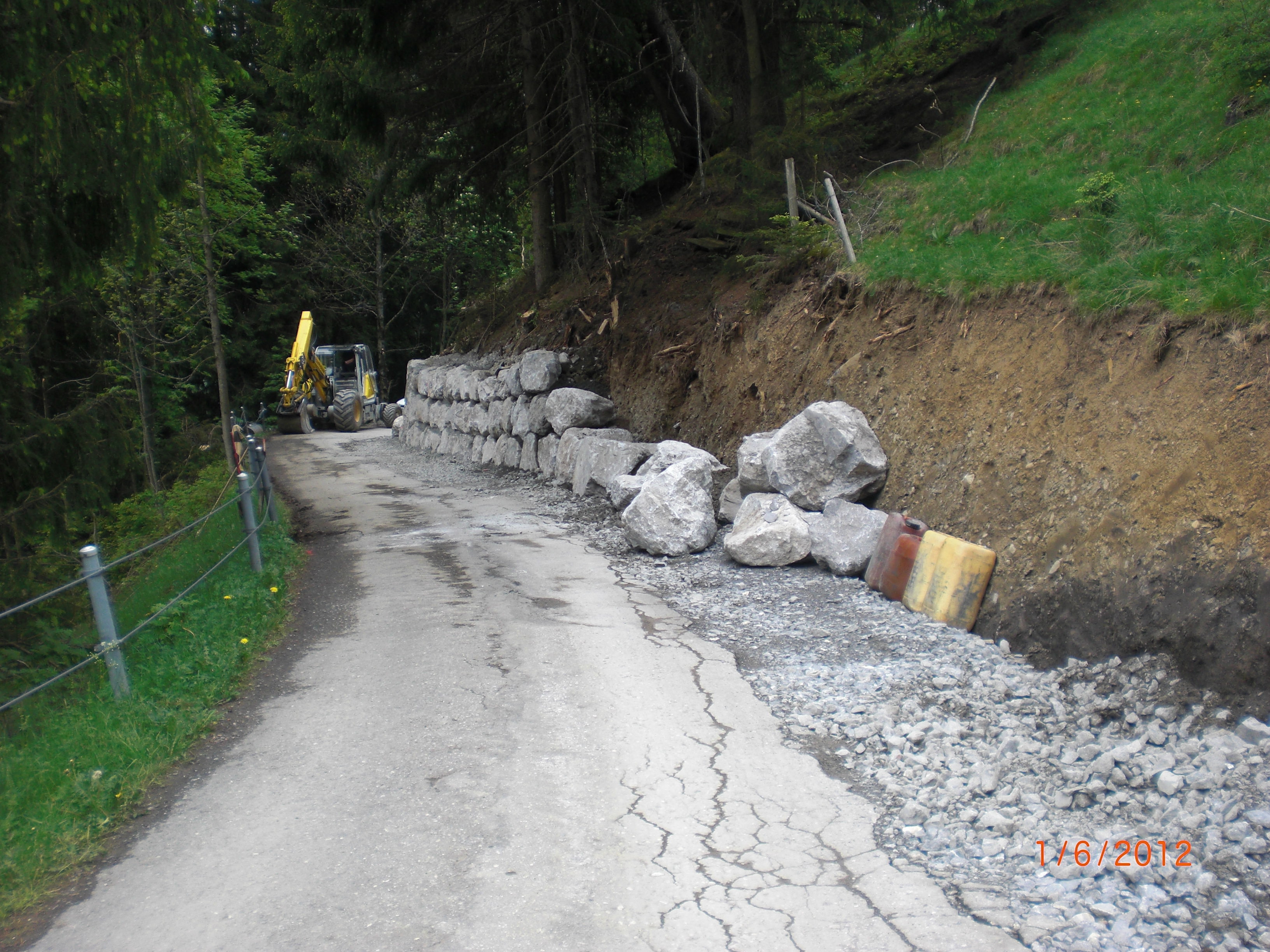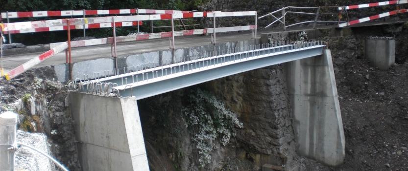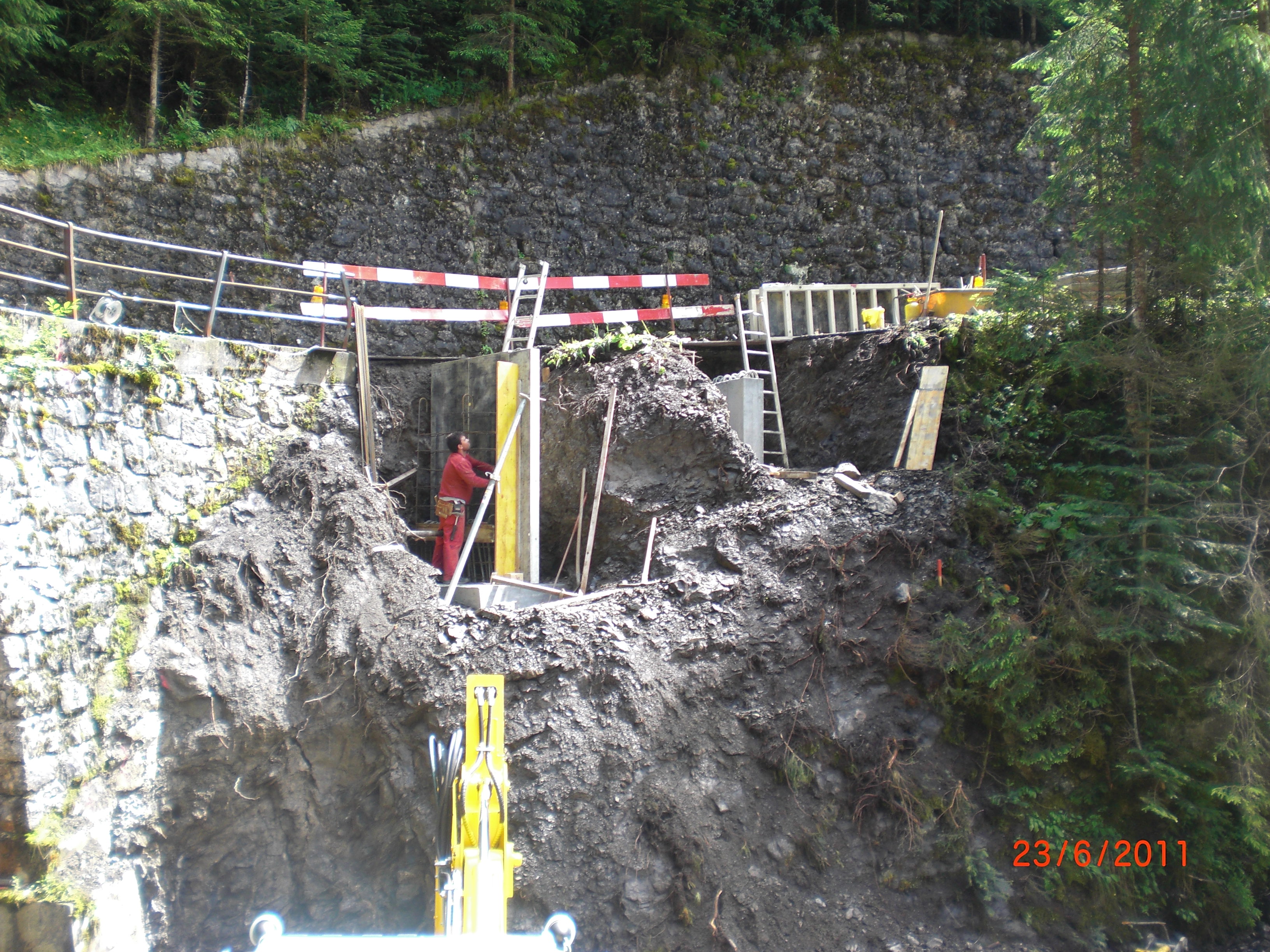 Ausbau der best. Strasse. Berg- und talseitige Hangsicherungen, Strassen- und Brückenverbreiterungen sowie Sanierung des Oberbaus.