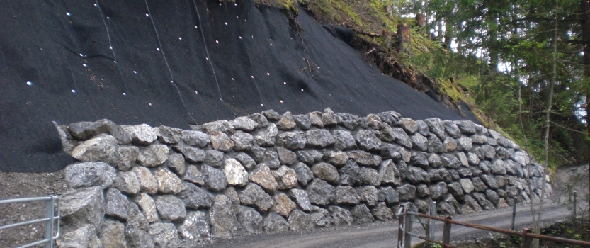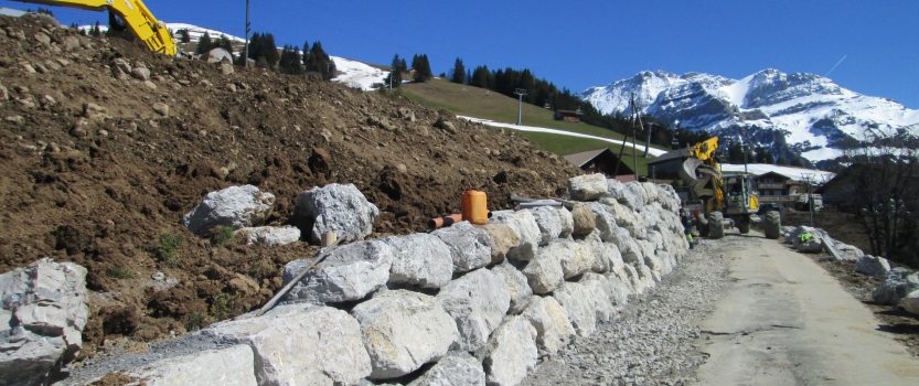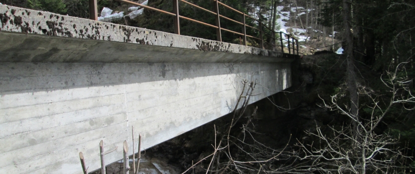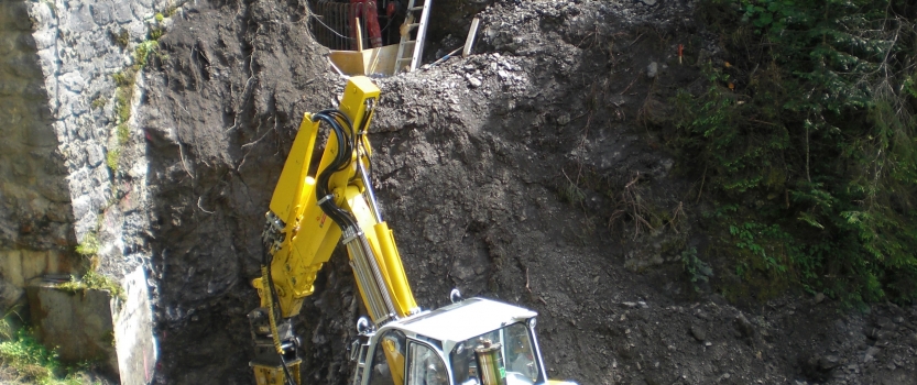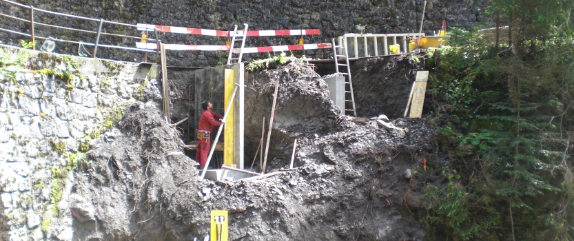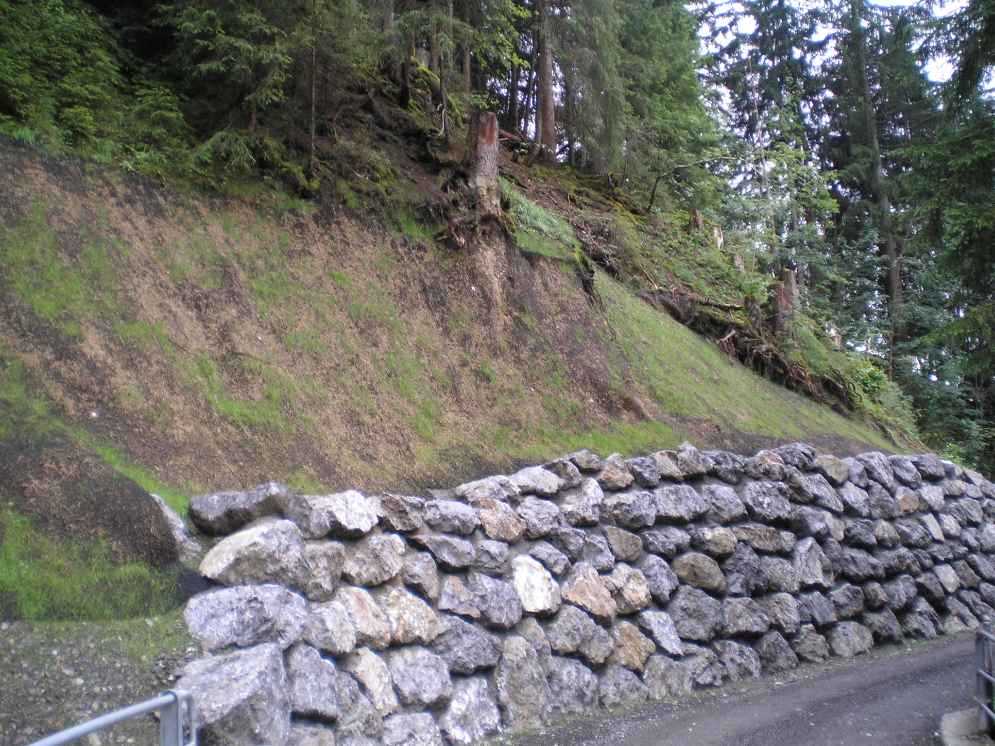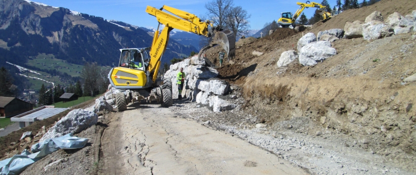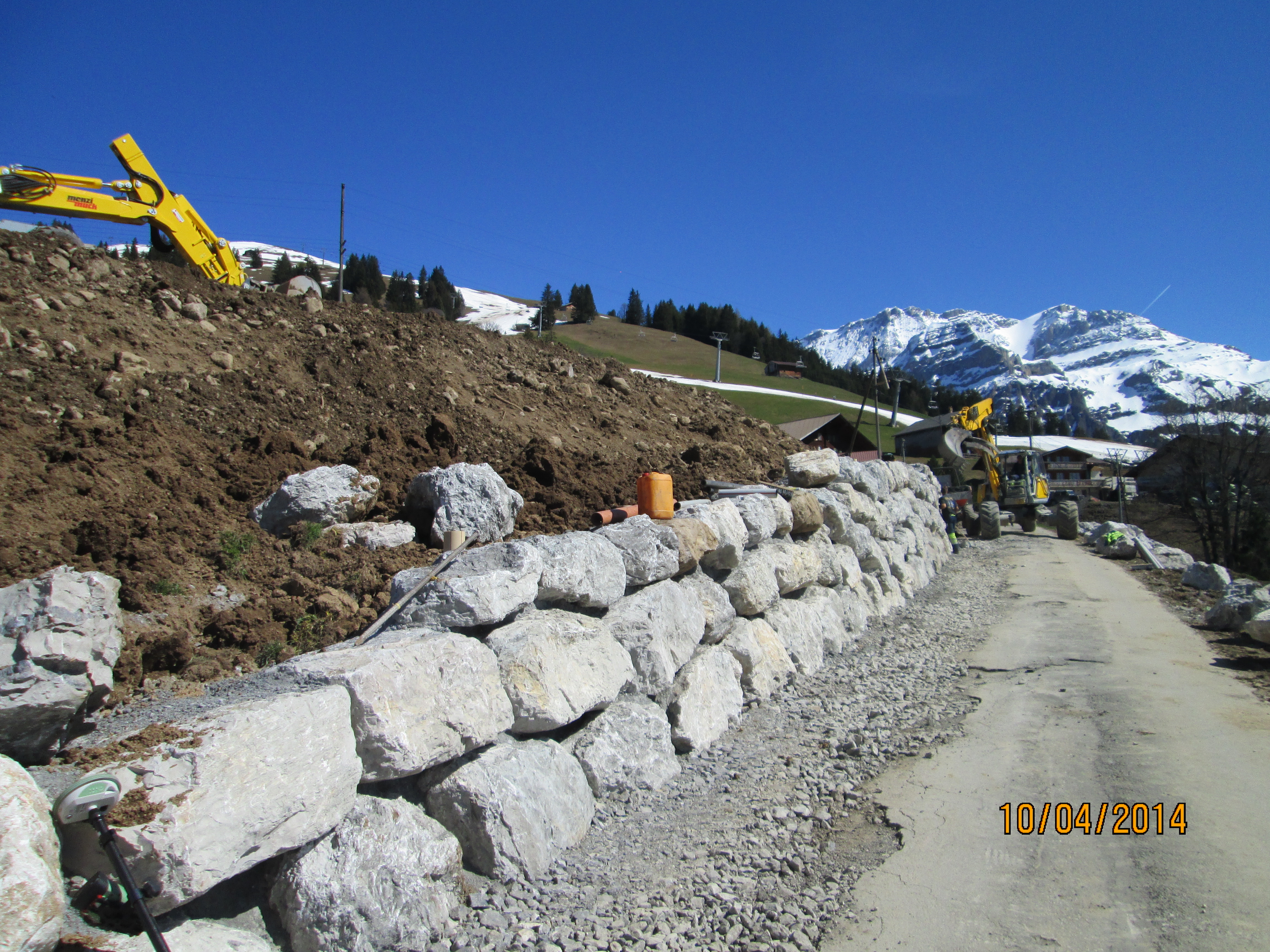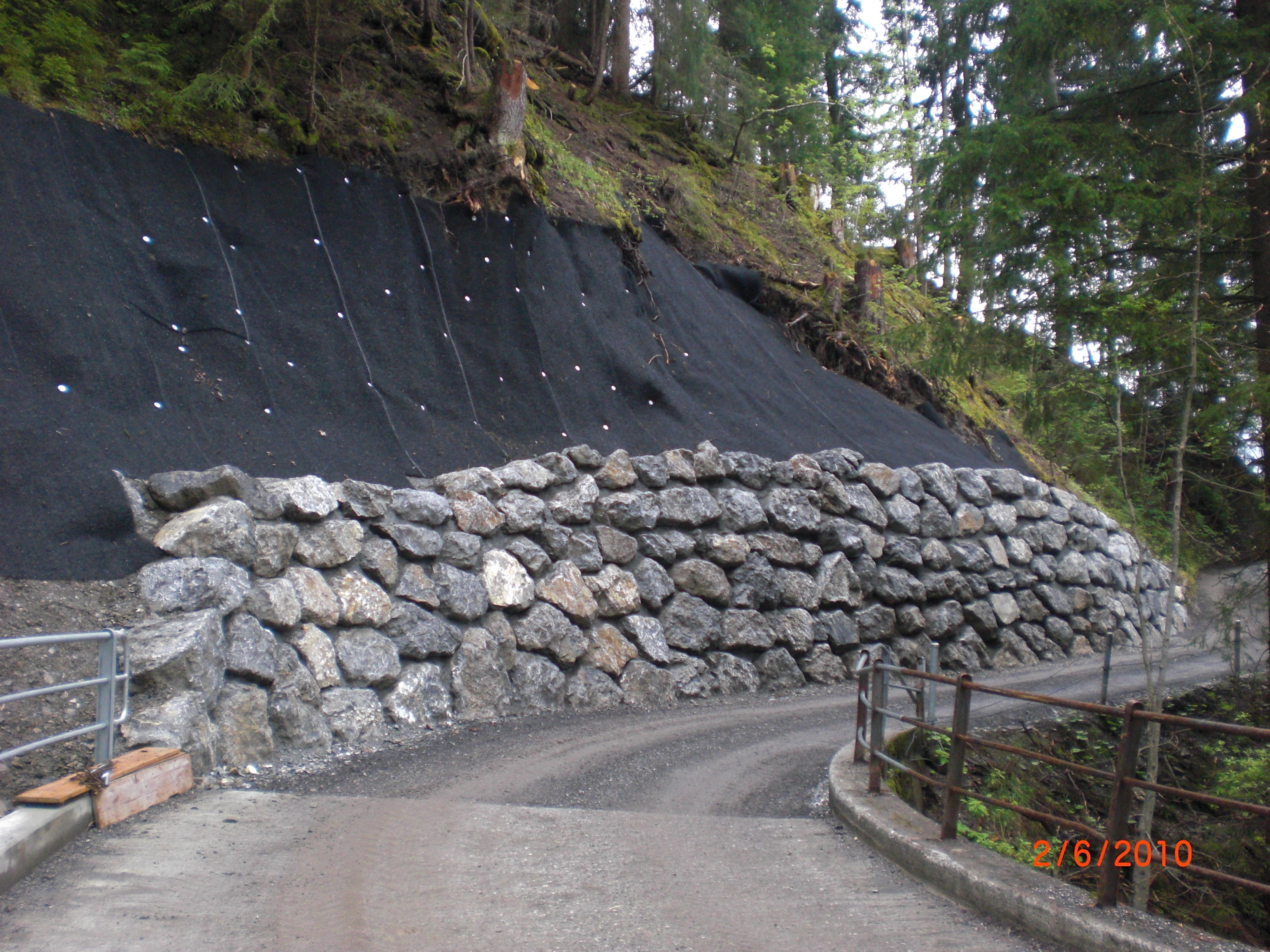 Ausbau der best. Strasse. Berg- und talseitige Hangsicherungen, Strassen- und Brückenverbreiterungen sowie Sanierung des Oberbaus.