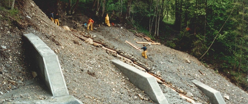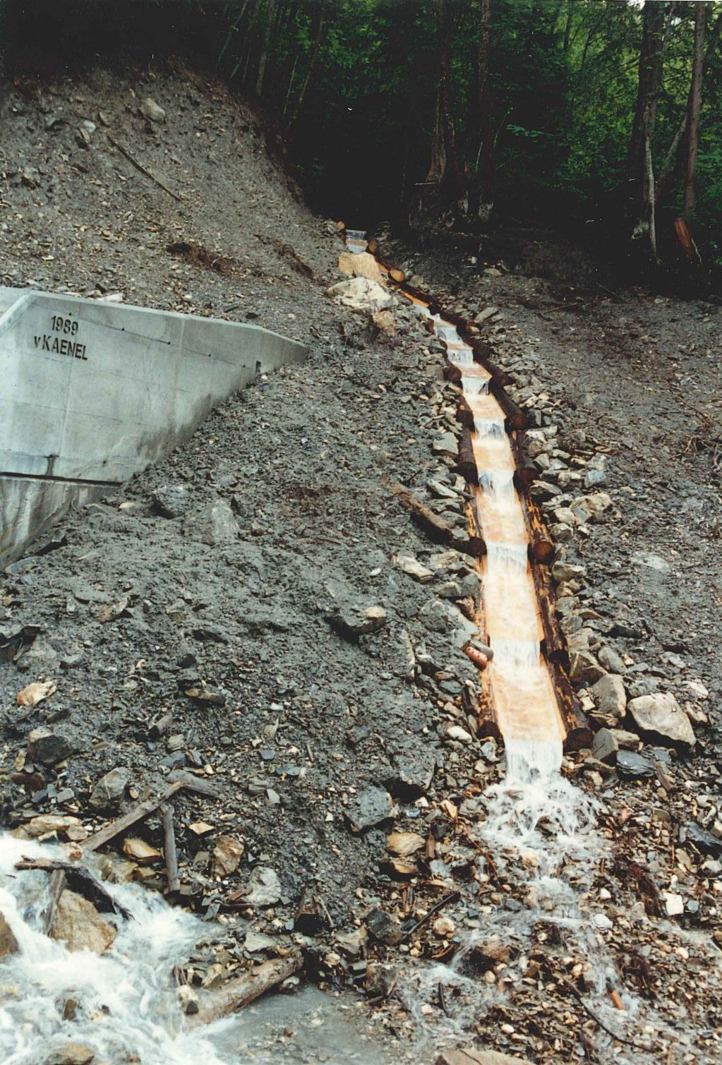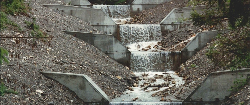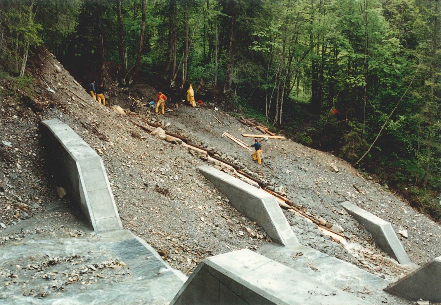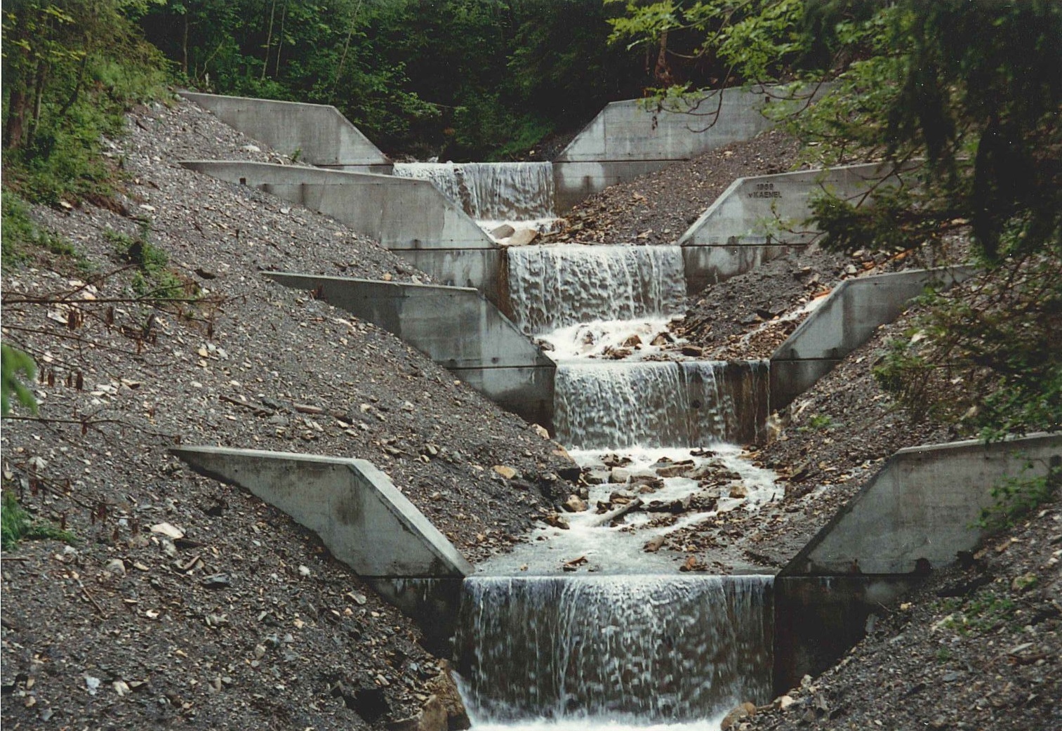 Querverbauung mittels Betonsperren im Ussere Sitebach.