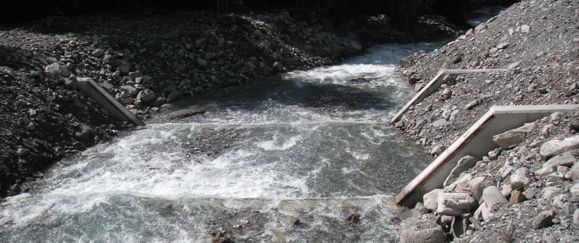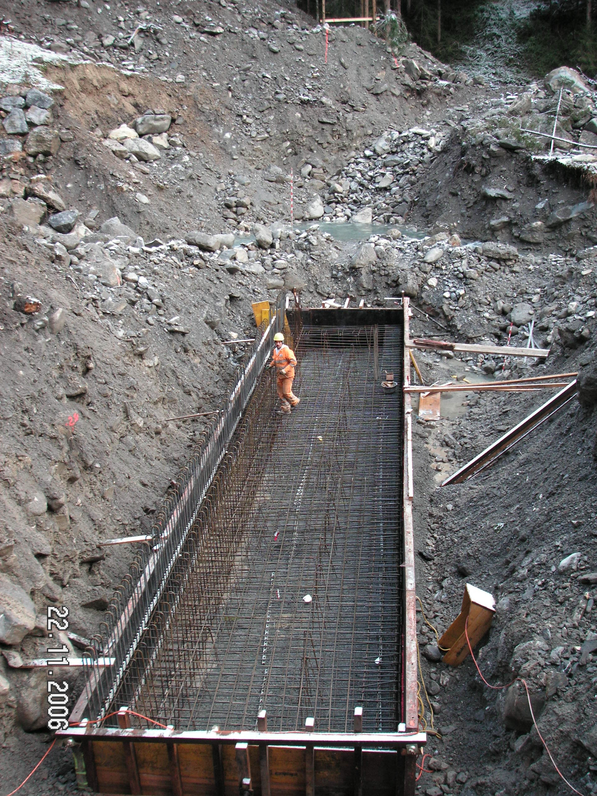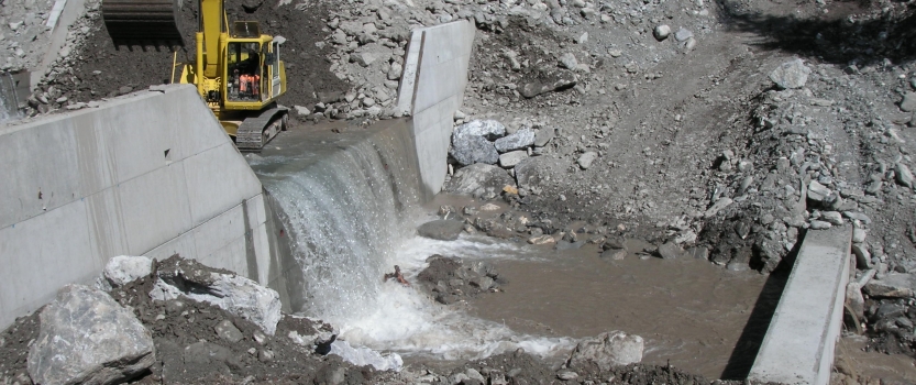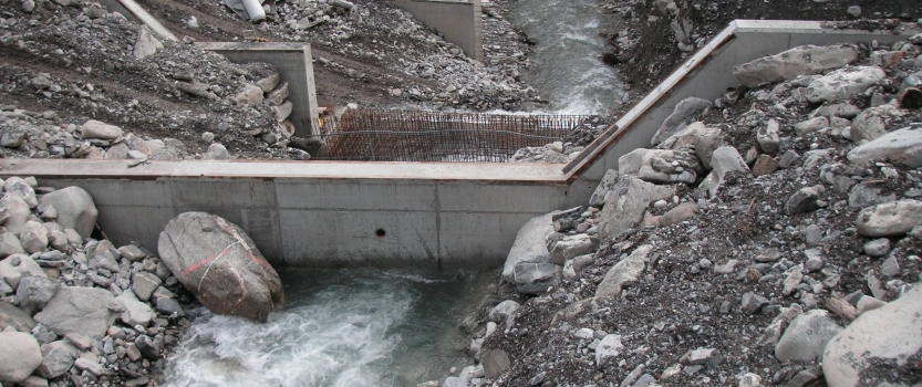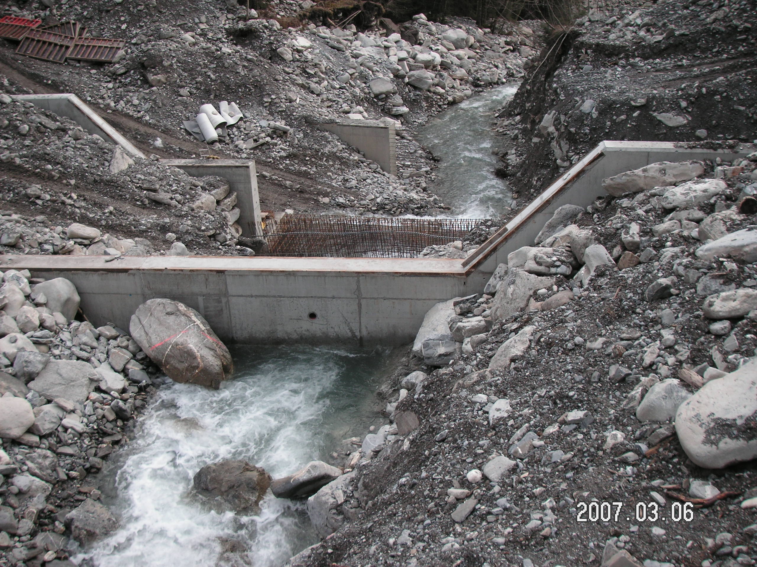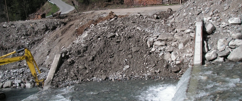 Neubau von 3 Betonsperren im Färmelbach unterhalb des Geschiebesammlers.