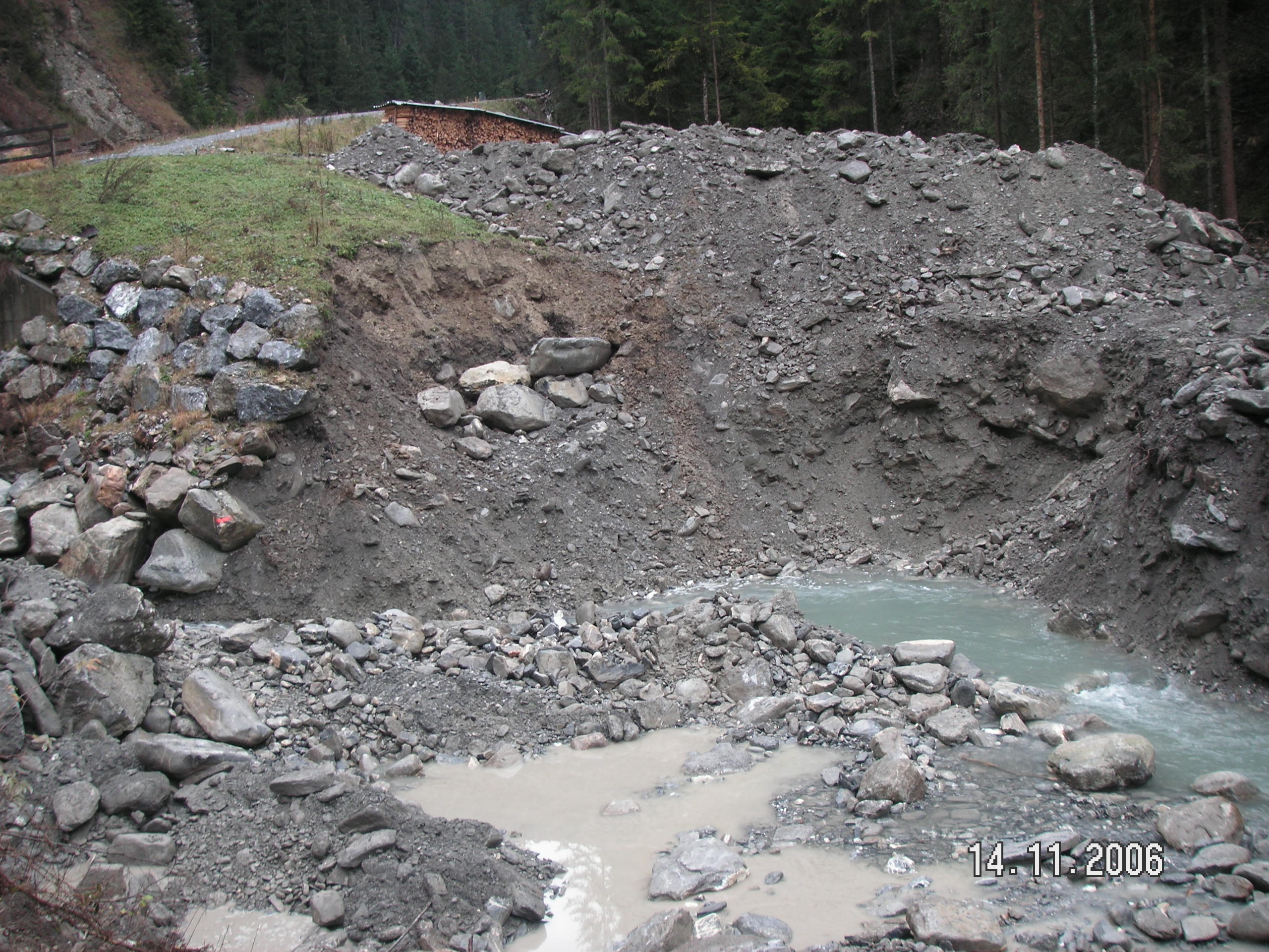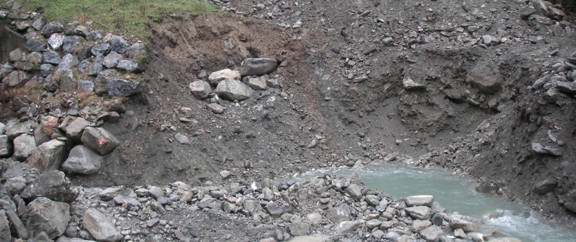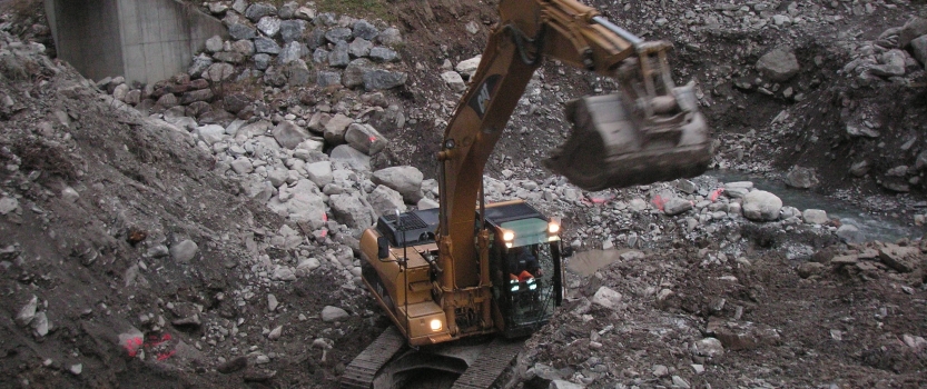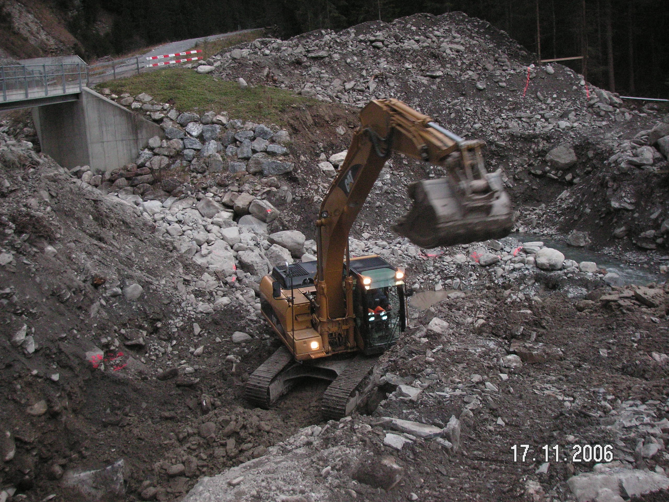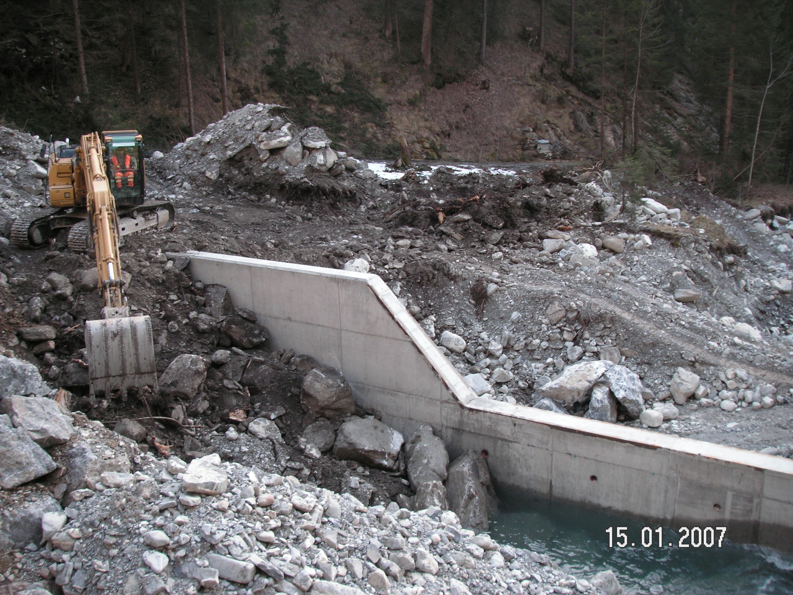 Neubau von 3 Betonsperren im Färmelbach unterhalb des Geschiebesammlers.